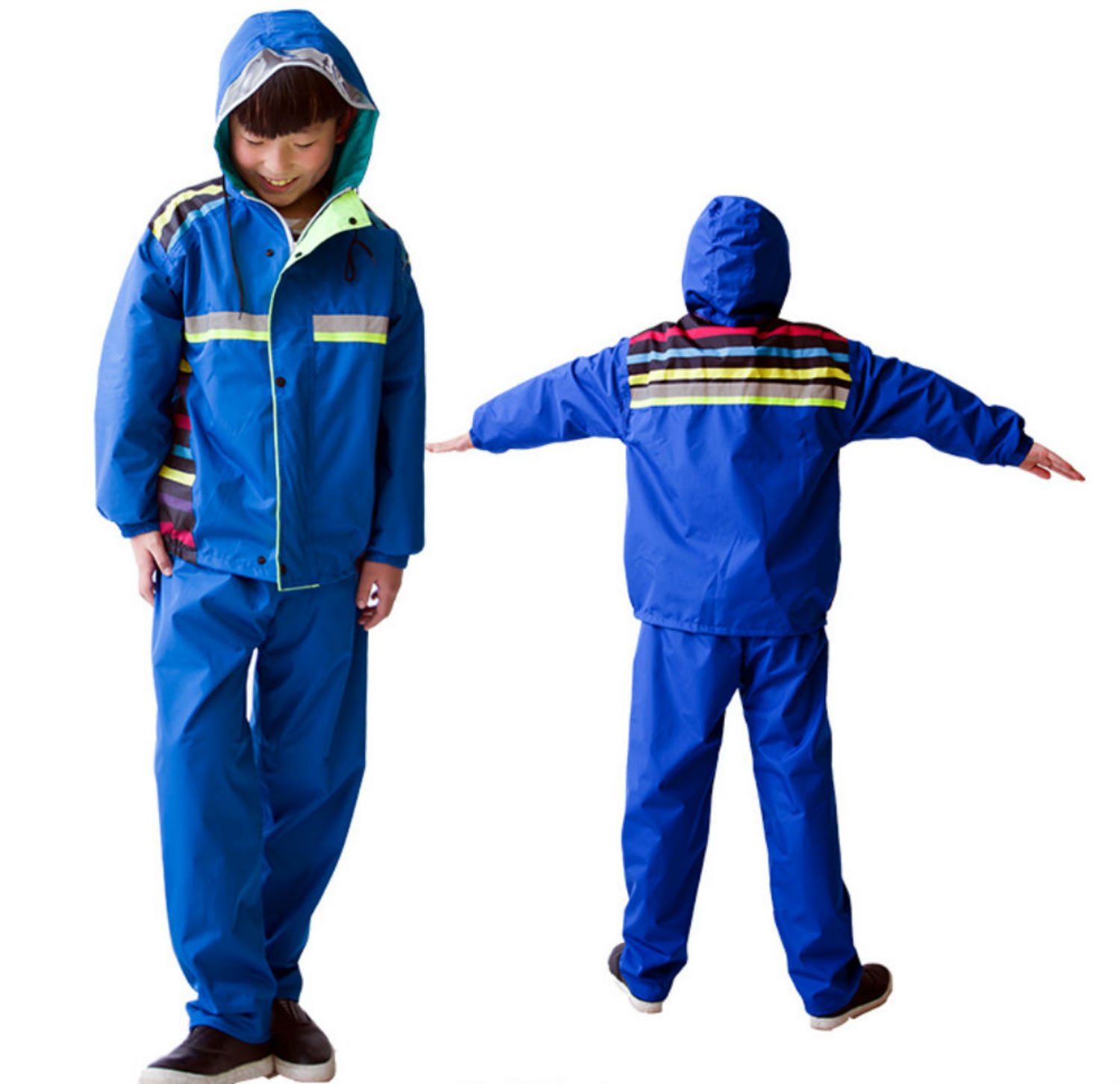 Rainwear for kids with Rainbow's borderline in colorful color.