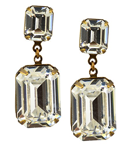 Liz Palacios Gold Plated Rectangle Dangle Post Earrings in Clear Swarovski Elements Crystal