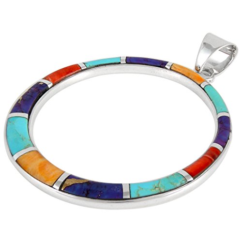 Gemstone Pendant NecklaceContemporary pendant made of solid sterling silver, genuine turquoise, purple turquoise, and spiny oyster shell. Fine craftsmanship.