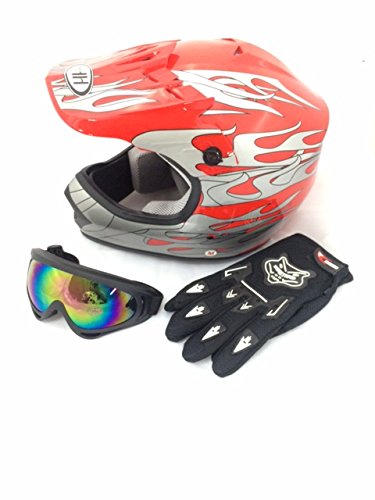 -. Brand : SMART DEALS NOW -. Color : red -. Feature : Gloves & goggles included! This youth off road combo is loaded with features! / Beautiful Gloss UV protective finish / Removable and washable padding; Well vented all purpose product for off-road riding. / Heavily cushioned and very comfortable interior / Light weight extremely durable composite shell -. IsAutographed : 0 -. IsMemorabilia : 0 -. Label : SmartDealsNow -. LegalDisclaimer : Warranty includes 30 Days for all defective parts. If you would like to return a product purchased, simply ship the product back to us and we will issue a full refund. The Buyer is responsible for return shipping. If there is shipping damage please refuse the shipping. -. Manufacturer : SmartDealsNow -. MPN : Red/Flame -. PartNumber : Red/Flame -. ProductGroup : Sports -. ProductTypeName : OUTDOOR_RECREATION_PRODUCT -. Publisher : SmartDealsNow -. Studio : SmartDealsNow -. Title : SmartDealsNow Helmet Dirt Bike Style Youth Model color Red Flame +Gloves+Goggles