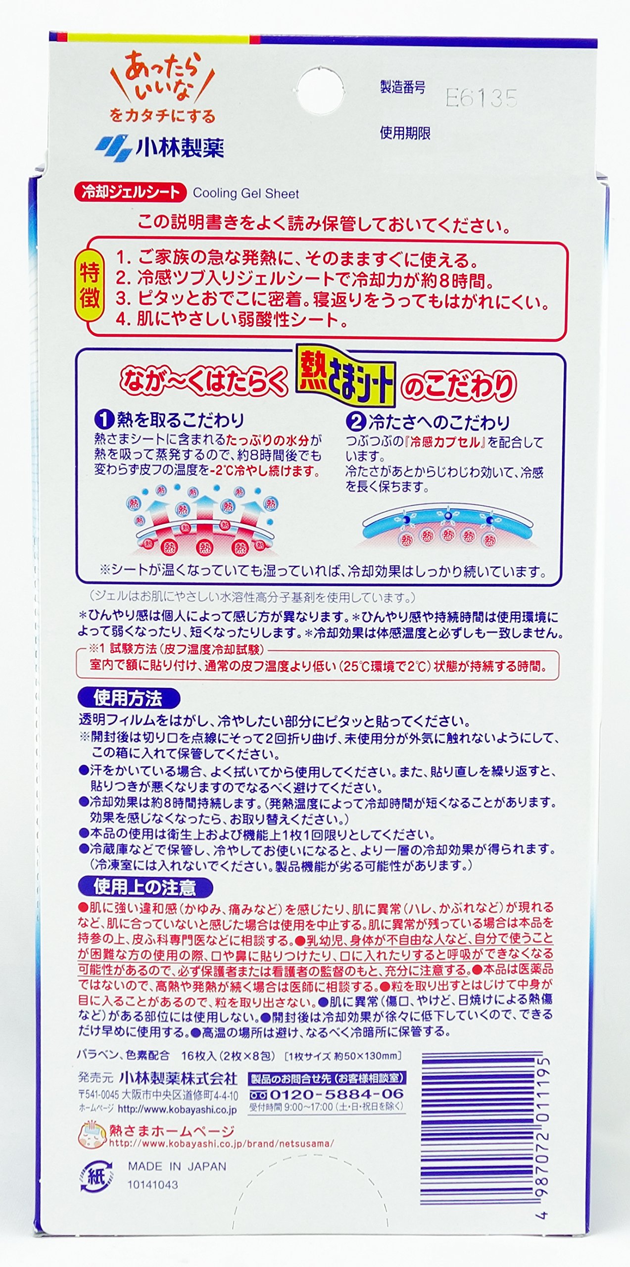 Kobayashi Cooling Gel Sheet 12sheet + 4
