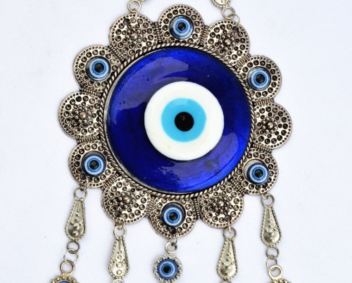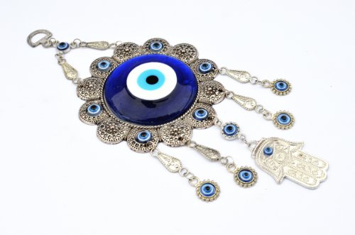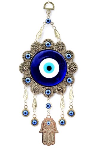 -. Binding : Kitchen -. Brand : Betterdecor -. Color : blue,silver -. EAN : 0661799422895 -. Feature : The sale is for one Evil Eye with Hamsa hand hanging ornament and a pounch with "Betterdecor" P.R.Inted on it. / Sun Flower Design. total length is about 10" ; Diameter of the plaque is about 3.5" / material : metal and glass / you can put them on the wall of your office and home or any where you like / great ornament and good gift! -. IsAutographed : 0 -. PackageQuantity : 10 -. ProductGroup : Home -. ProductTypeName : HOME -. Title : Blue Evil Eye with Hamsa Hand Protection Hanging Ornament (With a Betterdecor Pounch)-006 -. UPC : 661799422895