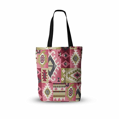 KESS InHouse Jacqueline Milton "Tribal Patch - Red" Red Pink Painting Everything Tote Bag, 16" x 16", Multicolor