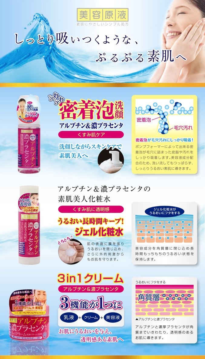 It is preferable to use water, DPG, trehalose, arbutin, placenta extract, hydrolyzed collagen, water soluble collagen, succinyl atelocollagen, glycerin, hydroxyethyl cellulose, methyl isothiazolinone, K hydroxide, diphenyl dimethicone, polyglyceryl myristate-10, carbomer, triethyl hexanoin