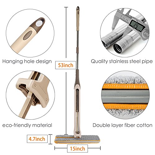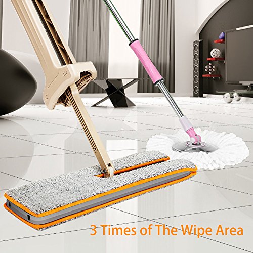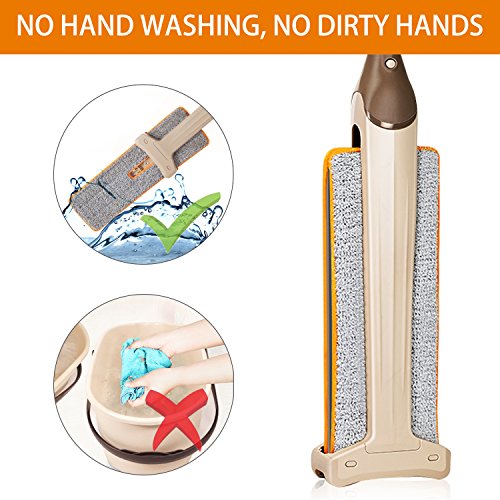 HAND WASH FREE: Porfessional and latest designed floor mop provide handwash free experience for you to get perfectly easy use feeling.The excellent Automatic Squeeze mop head can let water wringed out from the mop head easily and quickly.Never need handwash anymore or wring baskets