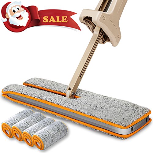 FRMARCH Double Sided Flat Mop-Self Wringing Microfiber 360 Lazy Flip Floor Mop Handwash Free Wet and Dry Floor Cleaning Mops (A Total Of 4 Mop Cloth)