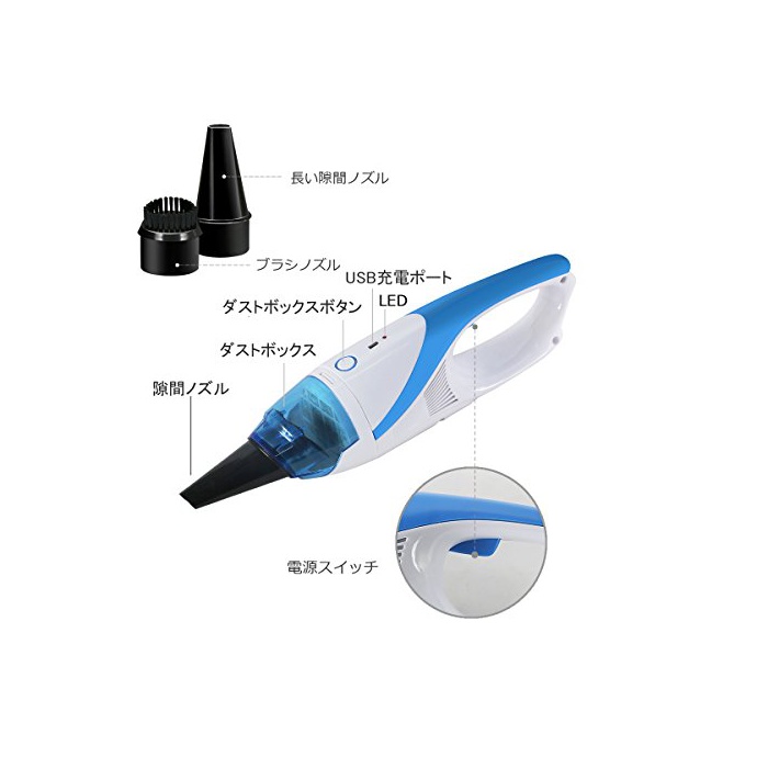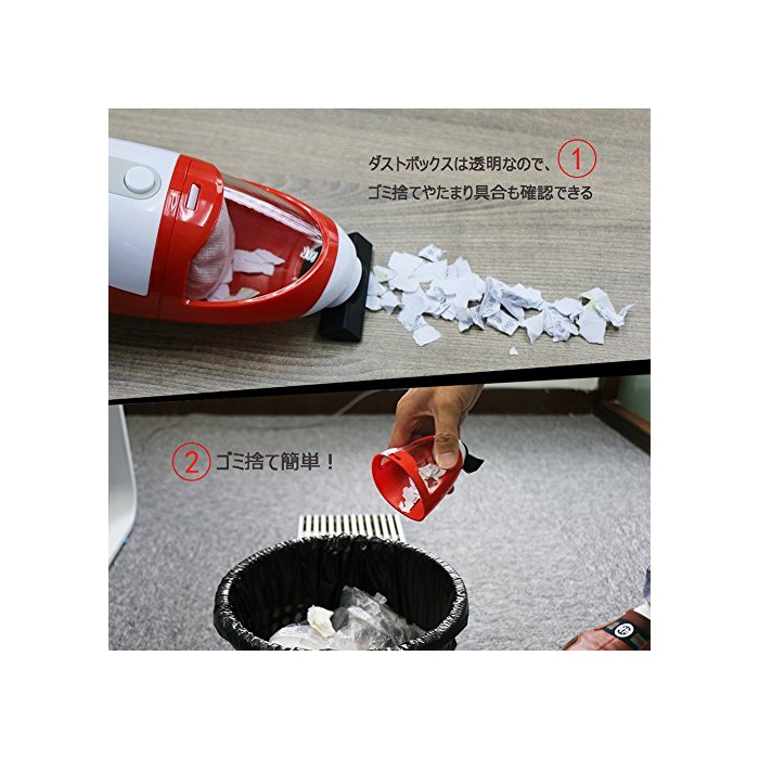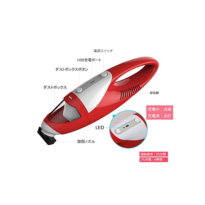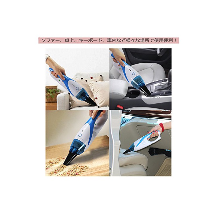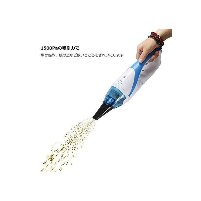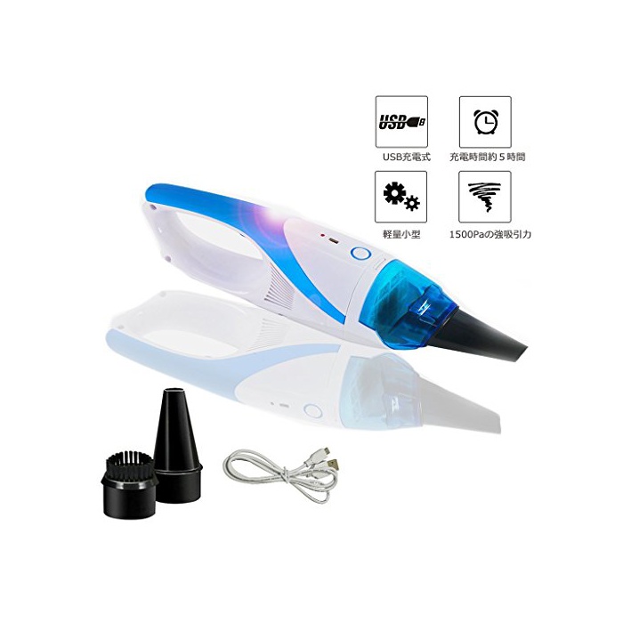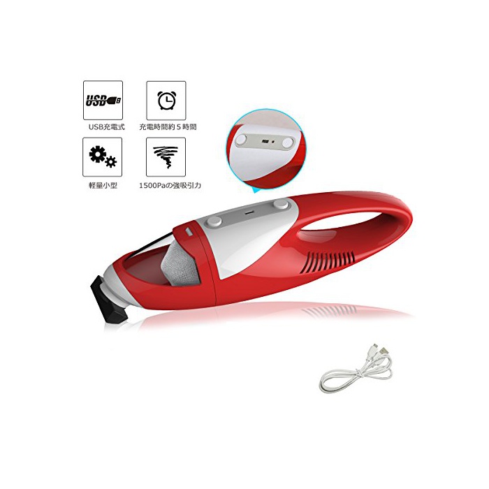 【광범위 적용】:USB충전식 무선이기 때문에,장소 목(갑상선) 오에의 청소로도 쓸만합니다.빈틈 노즐과 브러시 부속합니다.좌석의 빈틈 등,보통은 청소할 수 없는 것 장소의 쓰레기도,안쪽까지 들어 가 확실히 캐치 합니다.USB충전으로 옵니다,동가시간 약15분【강한 파워풀 흡인력】:1500Pa의 강한 인력에,어린 아드님이 먹어 찻잔을 씻은 물을 담는 그릇(흘림)이나,애완동물의 털,차의 청소용 등,1대 있는 것 뿐(만,만큼)으로 매우 편리!