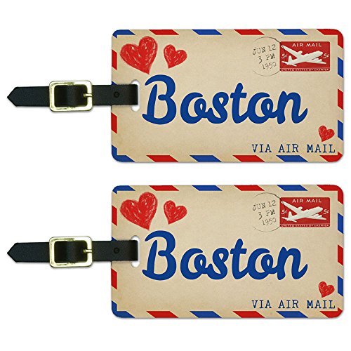 (Graphics and More)/Accessories/Luggage, Bags Travel/DIRECT FROM USA/Air Mail Postcard Love for Boston Luggage Suitcase Carry-On ID Tags Set of 2
