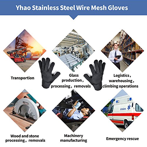Yhao Work Gloves Stainless Steel Wire Mesh Gloves-Cut Resistant, Safety Work gloves Anti-Slash Cut Static Resistance Protect Gloves - EN388 Level 5 Protection Kitchen Butcher Gloves