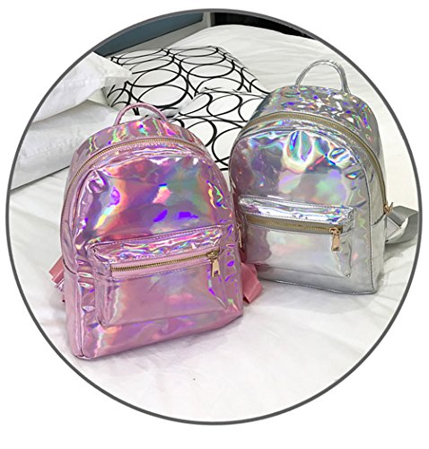 Stylish daypack featured with hottest hologram laser reflection design, makes you unique and fashion,Colors vary with light Change,Unique hologram laser bag will glow under the sunlight.