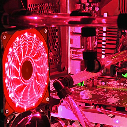 Computer Case Fan - INNOPLUS 3-Pin/4-Pin 120x120x25mm LED Quiet Edition High Airflow Low Noise High Pressure Fan Single Pack 15-RLED Mini Cooling Fan (red)