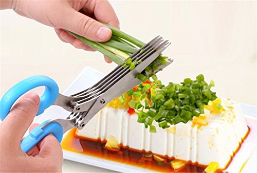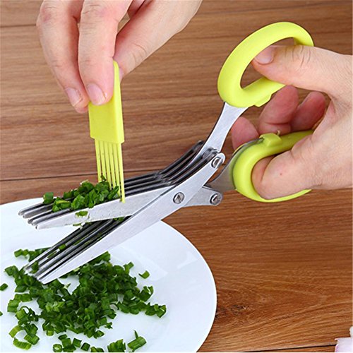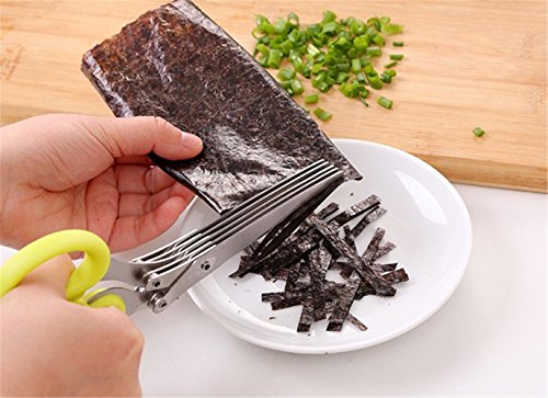BYM 5 층키친 가위 다기능 커터 요리 가위 파 가위 채 썲 5 연인왼손잡이 가위 청소 브러시 부착