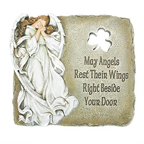 Joseph's Studio Angel and Shamrock Relief Garden Stone with Inscribed Verse, 9-Inch, Made of Resin Stone