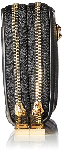 Double zip wallet with wristlet strap.