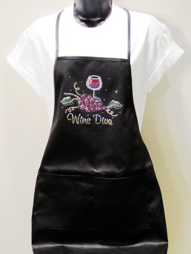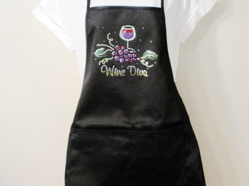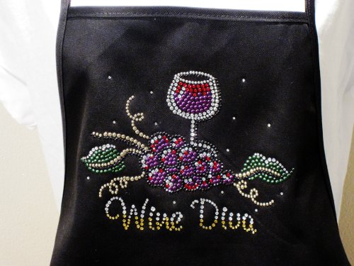 " Wine Diva " - Rhinestone Polyblend Two Pocket Wine Themed Apron