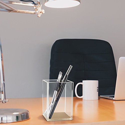 Acrylic Pencil and Pen Holder, HBlife Gold Desktop Stationery Organizer Modern Design Office Desk Accessory