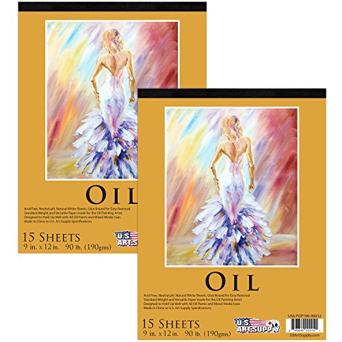U.S. Art Supply 9" x 12" Premium Heavy-Weight Oil Painting Paper Pad, 90 Pound (190gsm), Pad of 15-Sheets (Pack of 2 Pads)