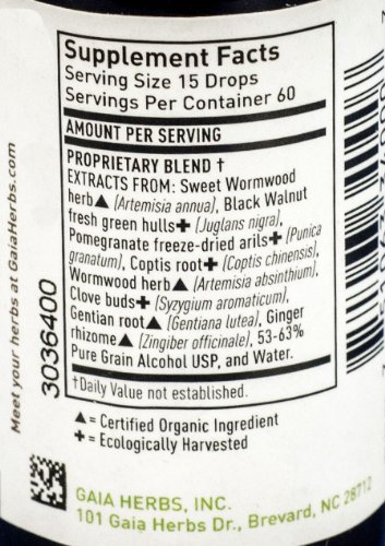 Gaia Herbs Wormwood Black Walnut Supreme Supplement Bottle, 1 Ounce, 2 count