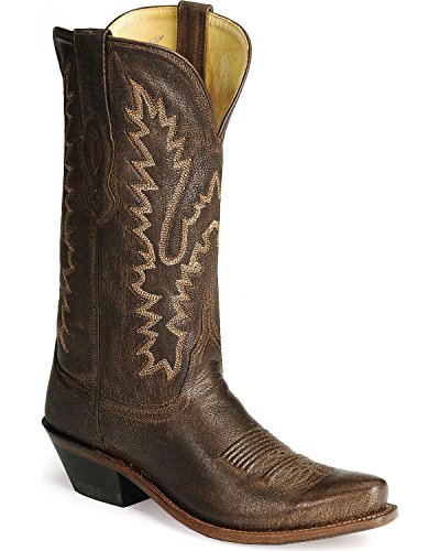 Studio : Old West Publisher : Old West Binding : Apparel Product Description Versatile cowgirl boots with modern flair Cowboy western boot features a dark brown distressed leather foot under a matching 12" shaft. An elaborate, six-row stitched shaft pattern accents. Fully leather lined. Hand corded medallion. Reinforced shanks. Single stitched Goodyear welt. 0