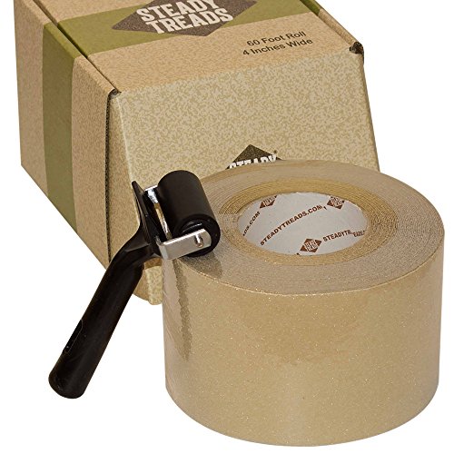 60 Foot, Non-Slip Clear, Translucent Adhesive Grit Tape and Roller, PVC-Free, 4 Inch Wide Steady Treads Installation Kit