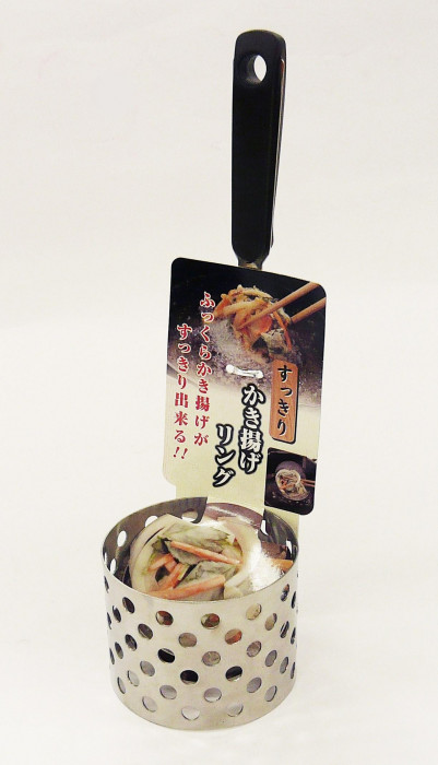 厚くて丸~い、かき揚げがご自宅で簡単にできちゃいます♪ 製造国:中国 素材・材質:本体:ステンレス鋼樹脂部:ポリプロピレン 商品サイズ:約95×90×290mm(リングサイズ:直径9cm) 重量:175g 仕様:食洗機:非対応樹脂部耐熱温度:110度 ※サプライヤー直送品 ご注文後5~6営業日後の出荷となります【商品名】すっきり かき揚げリング SKR-01