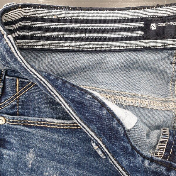 NIX 2019년 봄 신상 입니다. M톤 컬러에 은은한 캣브러쉬가 들어간 워싱. 허리 부분밴딩으로 착용감이 편한 데님 입니다. 마네킹 26size 착용