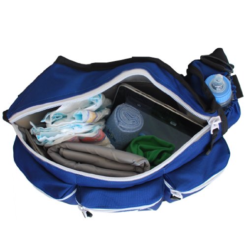 • Three large front pockets are designed for wipes, food, bibs, utensils and more