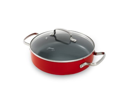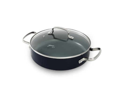 The Fiesta cobalt 2.5qt covered skillet adds a pop of color to any kitchen. It has a cobalt aluminum body with a stainless steel handle. Complete with Thermolon healthy ceramic non-stick coating in grey. Manufactured without PFOA and heat resistant up to 850oF, Thermolon is easy to clean and requires less oils and fats when cooking. Glass lid included.Feature