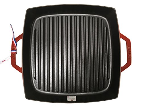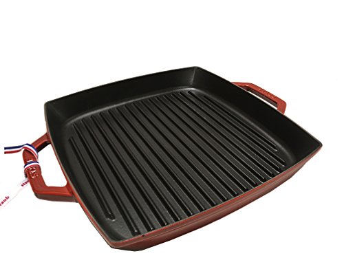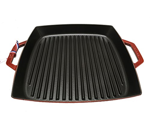 Staub's innovative enamel coating takes cast-iron cooking to the next level with improved performance, style and durability. This spacious grill pan has ridges for searing and browning and two loop handles for efficient transfer on and off the stovetop.