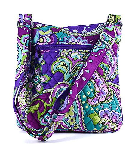 Vera Bradley's Hipster is the ultimate cross-body bag. There is a quick-access front open slip and zippered pocket, as well as a zip pocket on the back to keep phone and keys secure. Three slip pockets add to the organization inside the main zippered compartment. It features a fully adjustable shoulder and cross-body strap and measures approximately 10 inches (L) x 10.5 inches (H) x 2 inches (W). Patterns with solid color interiors are designed and manufactured for Vera Bradley Outlet stores.Feature