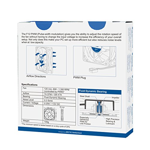 ARCTIC F12 PWM Rev. 2 - Fluid Dynamic Bearing Case Fan, 120mm PWM Speed Control
