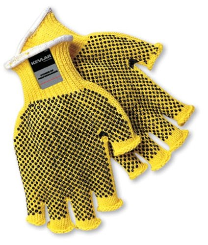 -. Title : Memphis 9369L Large Yellow Kevlar 7 Gauge Fingerless Cut Resistant Gloves PVC Dots