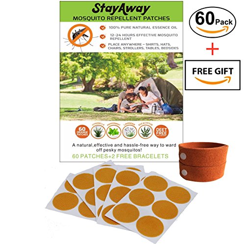 Mosquito Patch: 60 Count + 2 Repellent Bracelets. PREMIUM Long Lasting Repelling Patches. ALL NATURAL, with Citronella, Peppermint, Lavender, and Eucalyptus. For Kids AND Adults. Great For Outdoors.