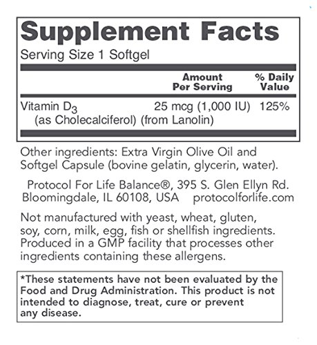 HOW IT WORKS: Vitamin D enhances the uptake of calcium from the diet, is necessary for bone and dental health, regulates healthy immune activity and supports healthy cell division.* Recent research indicates that Vitamin D also may play an important role in supporting cardiovascular health.*Protocol For Life Balance® is an A-rated GMP manufacturer of pharmaceutical grade dietary supplements created for healthcare practitioners. Our product line is comprised of effective, science-based formulations intended to address common nutrient deficiencies and support healthy physiological function. These formulations are based on the latest advances in nutritional science and incorporate trademarked ingredients of the highest quality. Our serving sizes are based on doses used in clinical trials and other published data, and the ingredients used in our products have been tested for efficacy in clinical trials and laboratory studies.
