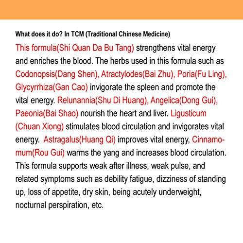Super Tonic Dietary Supplement 500mg 100 capsules (Shi Quan Da Bu Tang) 100% Natural Herbs