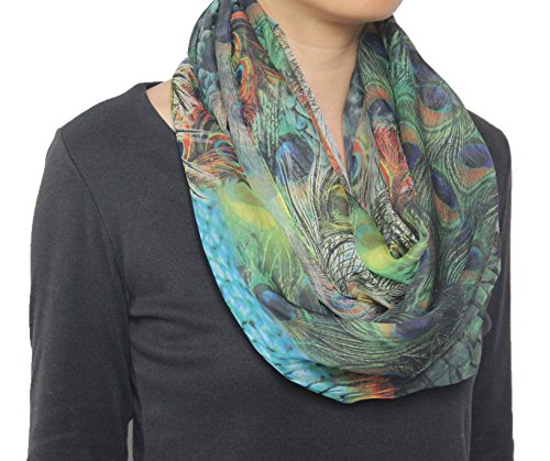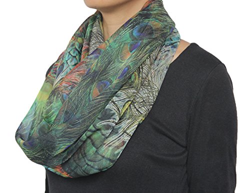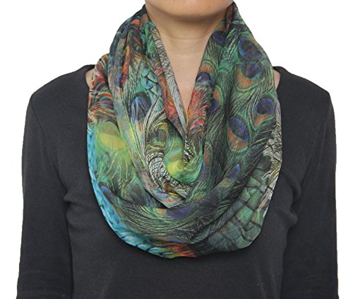 Product DescriptionThis beautiful infinity scarf features its peacock feather pattern, very fashionable, will add great addition to daily outfit0