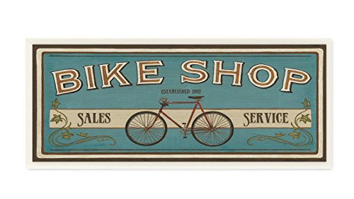 Stupell Home Décor Blue Bike Shop Store Sign Wall Plaque Art, 7 x 0.5 x 17, Proudly Made in USA