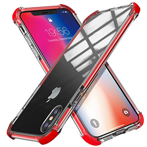 -. Feature : Clear, thin, sleek, stylish, pocket-friendly [X Shield design] specially for iPhone X, with wraparound colors and graphics add seamless style. / [X Shield Series] Made with Bumpers constructed of shock-absorbent TPE materials Integrated with red clear PC back, Provide 360° Heavy Duty Protection. / Bumpers all around, with TPE material Shockproof air Cushions at 4 corners inside, keep iPhone X safe from any angle drops. Raised lips lift camera and front display screen off the flat surface even dropping down. / Precise cutouts for quick and easy access to ports,environmentally TPU material ensure new button design with tactile feel. / Flexible case, easy to get on and off with no worries about scratching your iPhone. Also 100% compatible with iPhone X's new wireless charging feature.