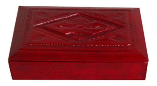 NOVICA Handcrafted Wood and Leather Jewelry Box, Red 'African Diamond'
