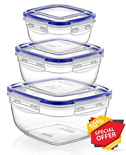 Lock&Fresh BPA Free Plastic Sealed food Storage Container Set 3 pcs 17 oz. - 51 oz.
