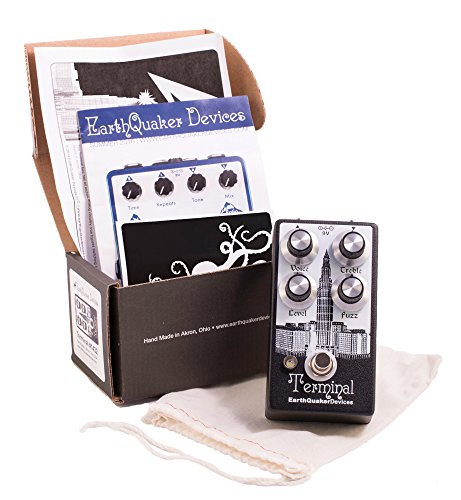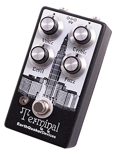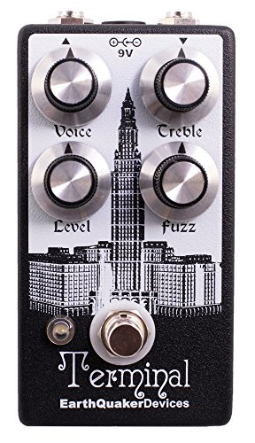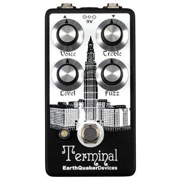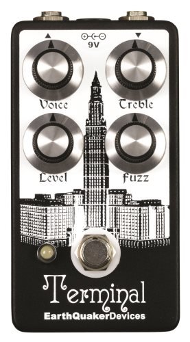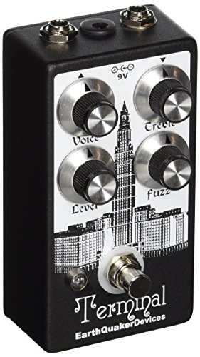 Studio : Earthquaker Publisher : Earthquaker Product Description The Terminal fuzz is a blown out, busted and all around destructive fuzz device modeled after my old JAX fuzz. For those not in the know, the JAX fuzz is a re-branded Shin Ei Companion fuzz that is well loved for its buzzy sound. The Terminal takes this design three steps further by allowing control over the gain, fine tuning of the EQ and a massive adjustable volume boost. The Voice controls the upper and lower mid range determining the over all frequency response while the Treble adjusts the biting top end. The Fuzz control goes from a gritty ?separated? drive to a pinched, searing grind. Between these three interactive controls you will find a wide range of blistering fuzz tones at your disposal. The Terminal fuzz has all archaic analog circuitry, true bypass switching and is made one at a time by real human beans in Akron, Ohio. 0