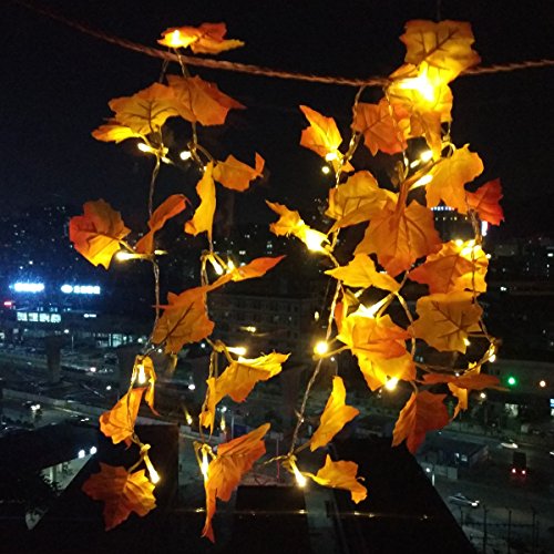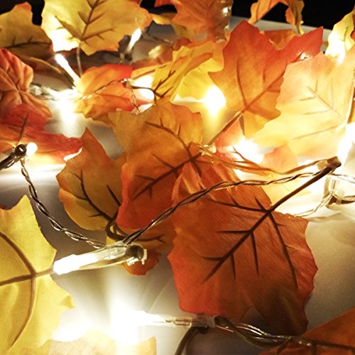 Maple Leaves LED Garland Lighted for Thanksgiving Christmas festival Decorations Fall Garland String lights 8.2 Feet with 20 Warm White LED Bulbs