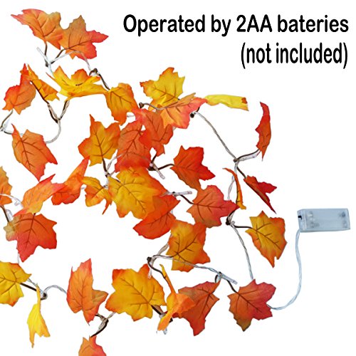 - The orange and yellow leaves lit by the vibrant orange lights make for a great blend of colors to warm up any room. Perfect festival decorations with no outlet needed.