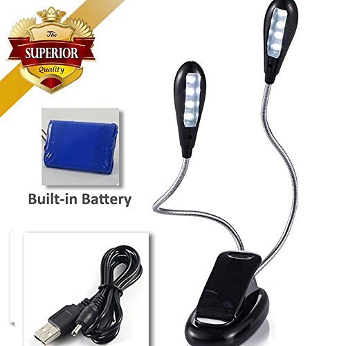 two fully adjustable arms with 5 brightness combinations, perfect for reading books/musical scores, illuminating keyboards, or even working with craft and arts, etc. It is not only a clip-on light but also a free standing light. various power sources, great convenience for multi-purpose using.