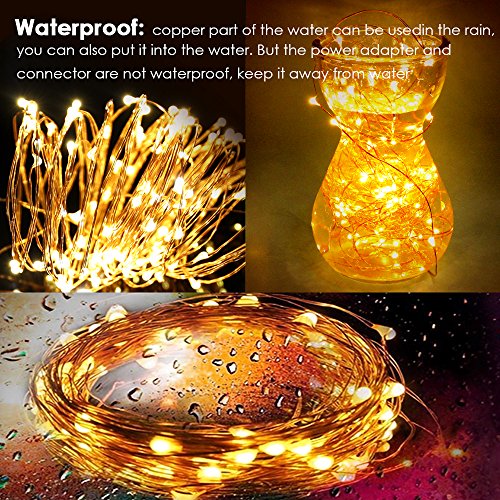 - WATERPROOF : IP66 waterproof rate:The copper wire part is waterproof so you can use it in the rain or drop it into the water.Add the perfect creative for your DIY.(The power adapter and the connector is not waterproof )
