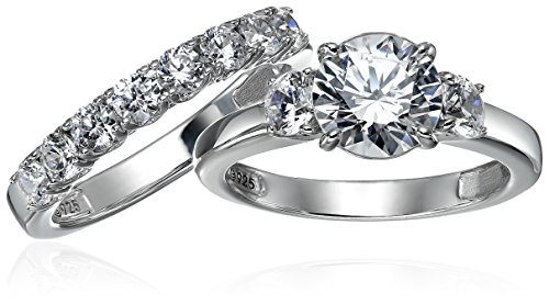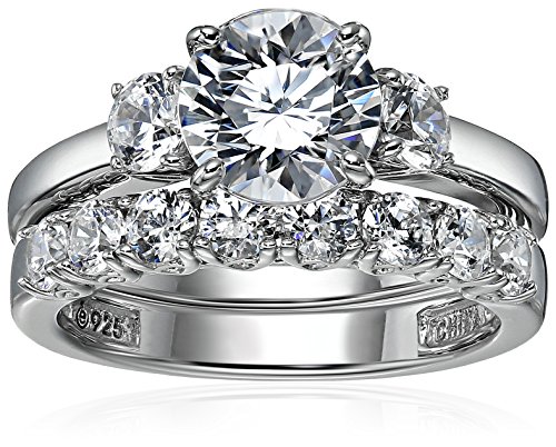 -. Title : Sterling Silver Platinum-Plated Swarovski Zirconia Three Stone Ring