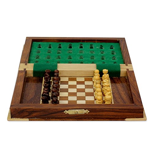 Studio : NOVICA Publisher : NOVICA Binding : Kitchen Product Description Kings and bishops, Knights, Pawns and Queens are ready to pack up and travel at a moment's notice. By rakesh pathak, this handsome chess set contrasts the tones of sheehan wood and boxwood. Magnets hold the pieces on the board when playing. Between games, the board folds to hold the warriors in its velvet-lined interior. It is designed to look like a book. 0