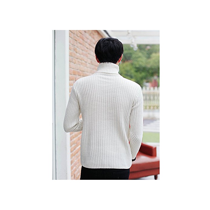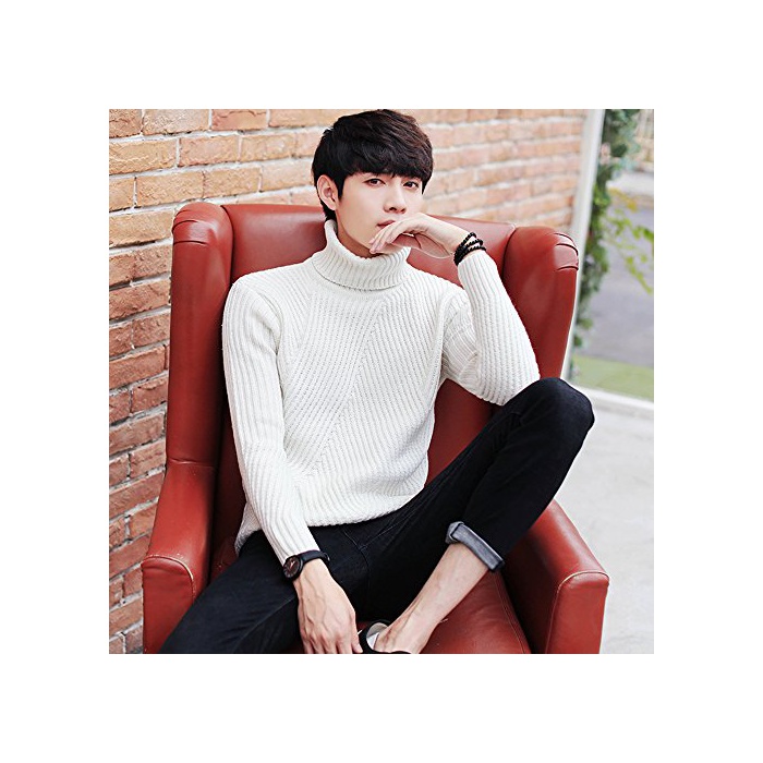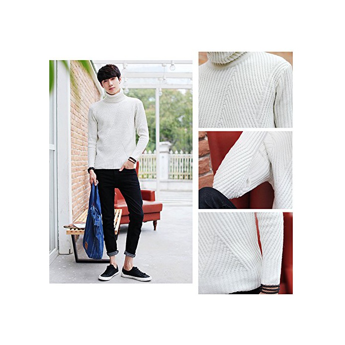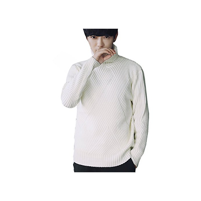 Boomliy 스웨터 맨즈 톱스 니트 크루 넥 케이블 뜨기 무지 둥근 목 모양 긴 소매 캐주얼 방한 따스한 멋쟁이 컷소우 (화이트, L)