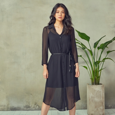 롱 쉬폰 셔츠 원피스