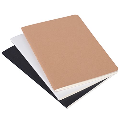 (Set of 3) A5 Dotted Notebook / Journal - 5.5 x 8.25 Dot Grid Paper for Bullet Journaling, 120 Sheets/240 Pages, Black/White/Kraft Brown Cover